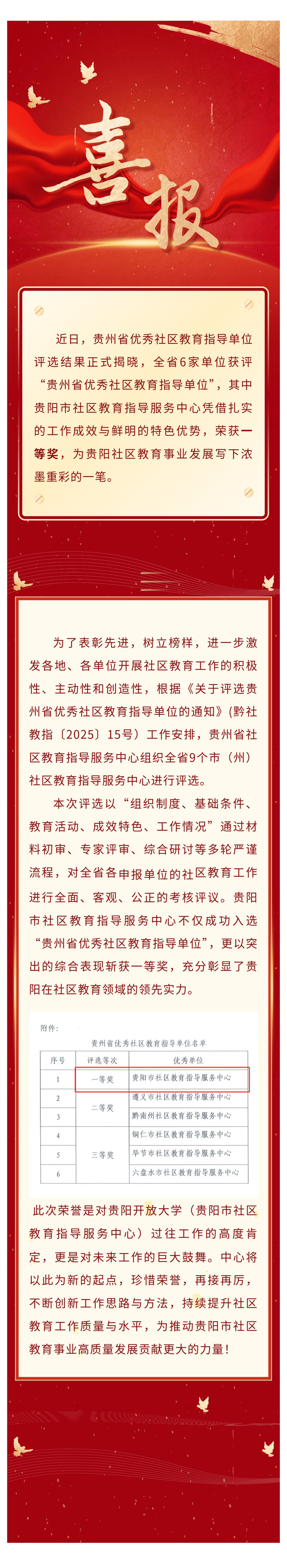 贵阳社区教育再添荣誉!市指导服务中心荣获省级优秀指导单位一等奖