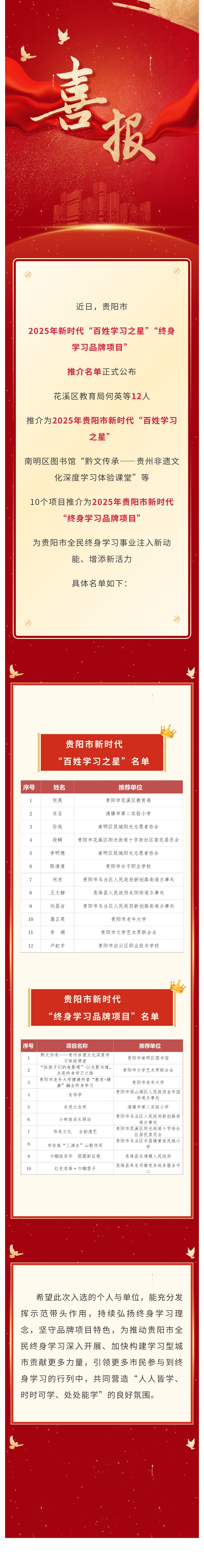 喜讯!2025年贵阳市新时代“百姓学习之星”“终身学习品牌项目”名单揭晓