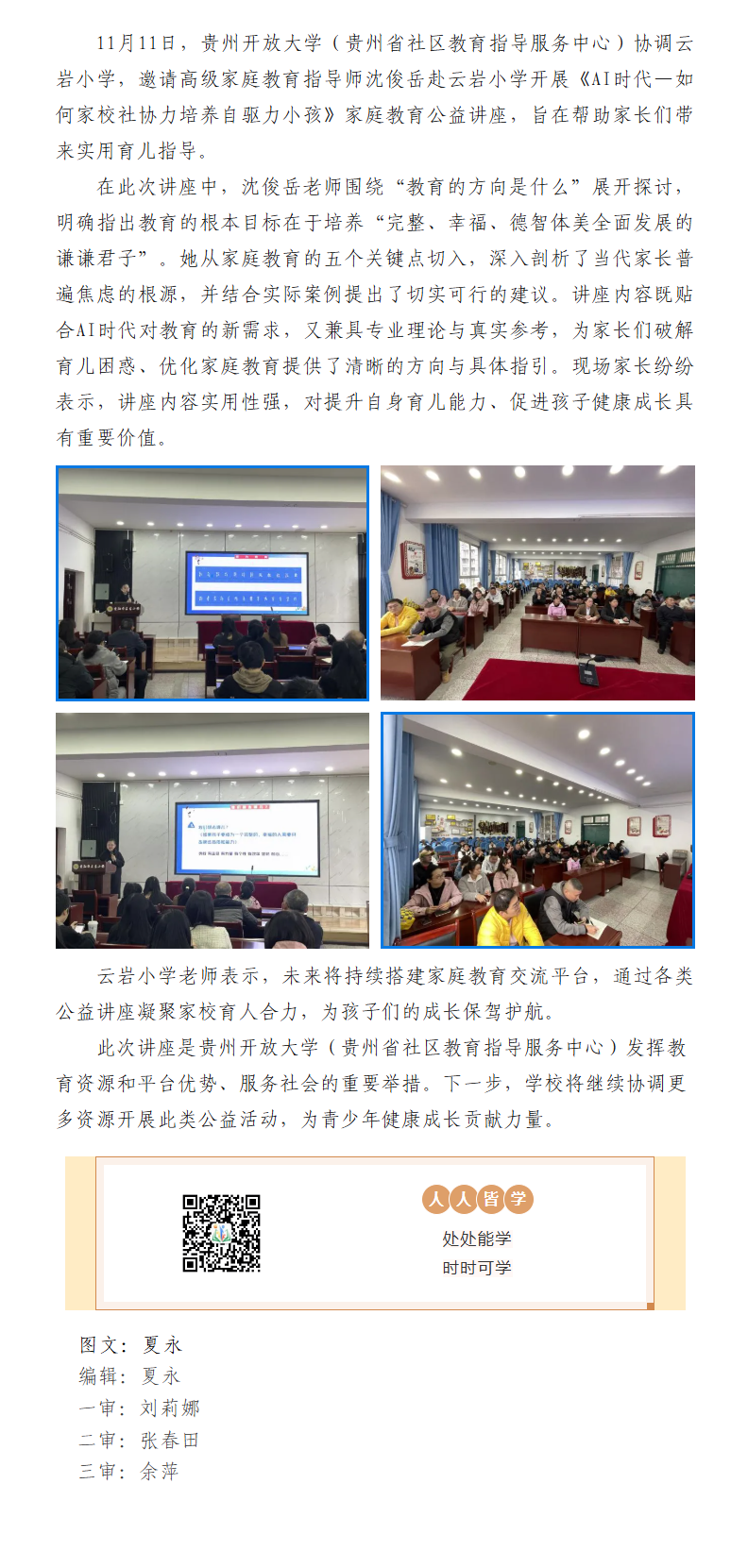 家校社协力,共育自驱力——贵州开放大学(贵州省社区教育指导服务中心)公益讲座走进云岩小学