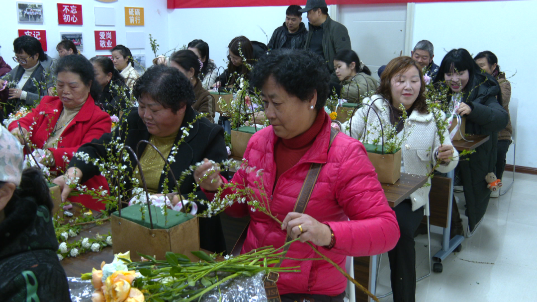 活动在社区负责人的节日致辞中拉开帷幕。随后进行的“致敬‘她力量’”插花环节,在花艺老师指导下,社区巾帼志愿者、好媳妇、好婆婆代表精心制作花艺作品,在花香中感受生活之美。