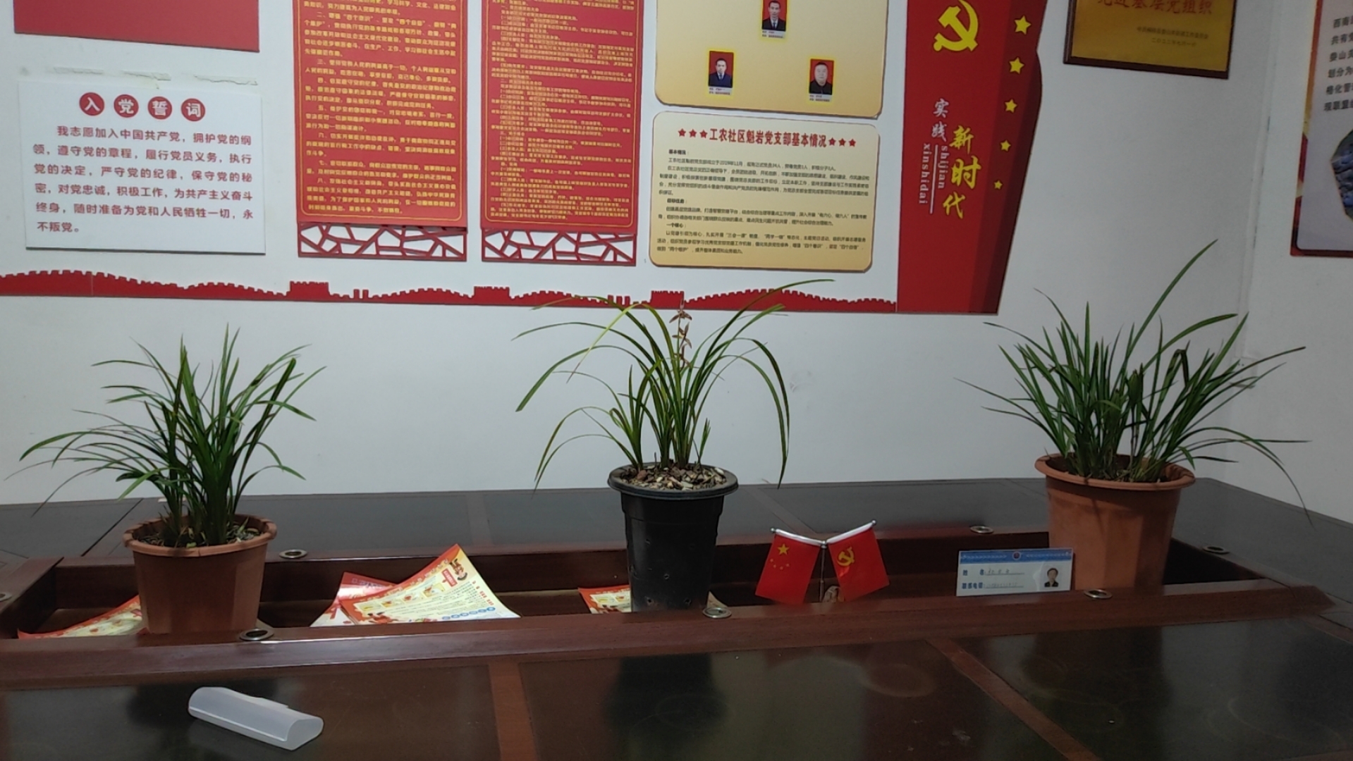 网格办公室一角,三棵兰花引人注目