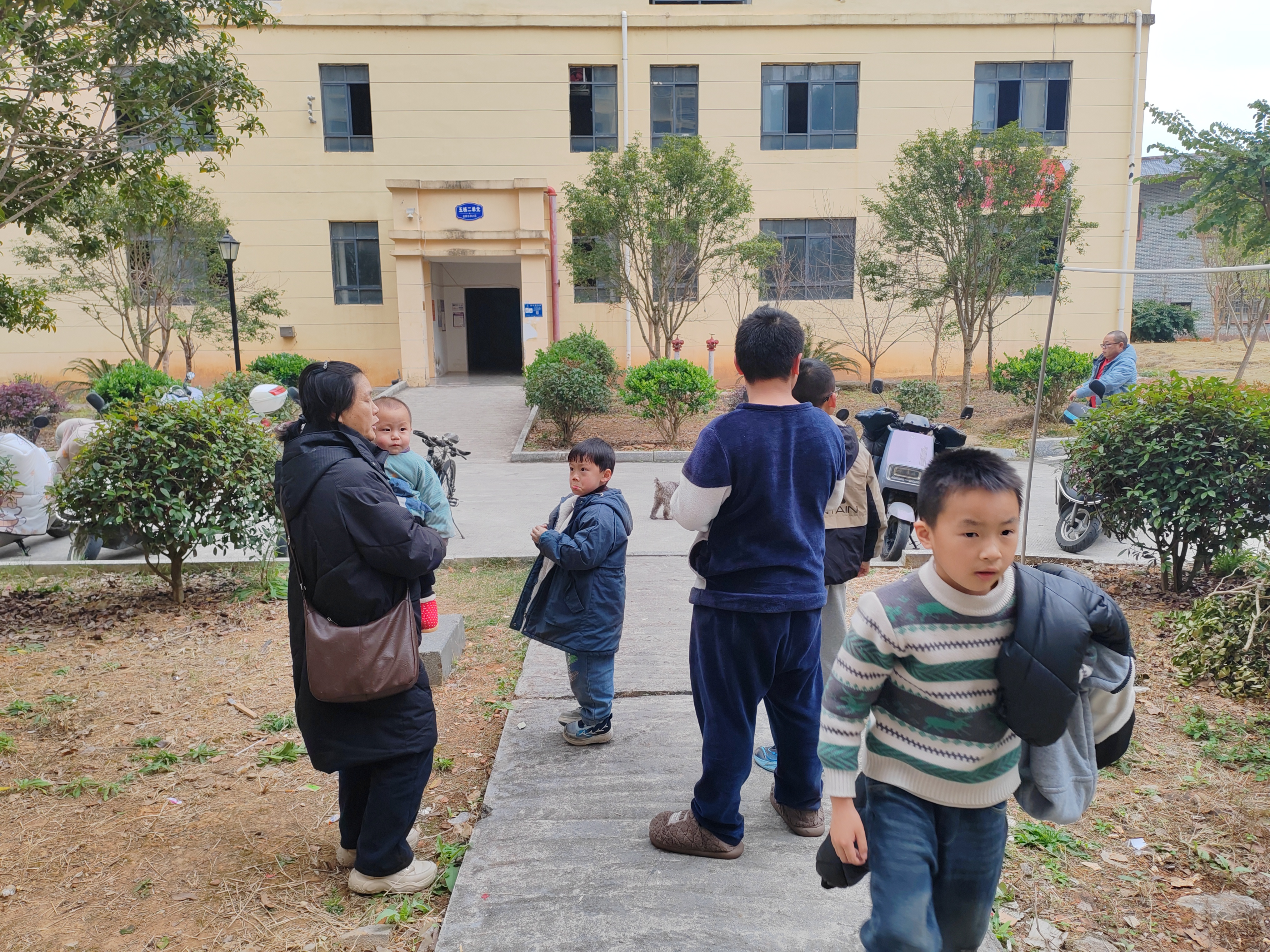 进入小区现场指导教育多个学生在电梯内玩耍