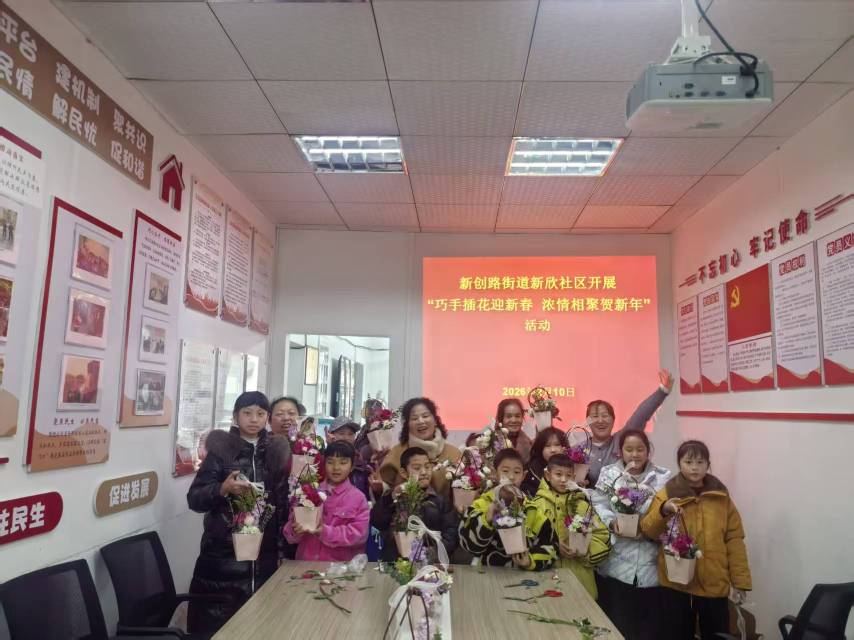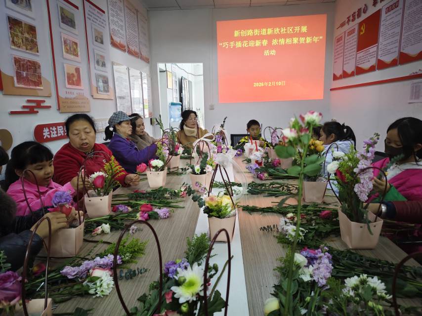 新欣社区开展“巧手插花迎新春 浓情相聚贺新年”插花活动