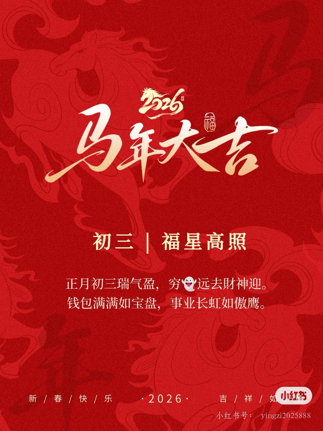 初三赤口,闭门谢客。谨言慎行,静以养性。金马护宅,阖家安守,无是非,纳百福。